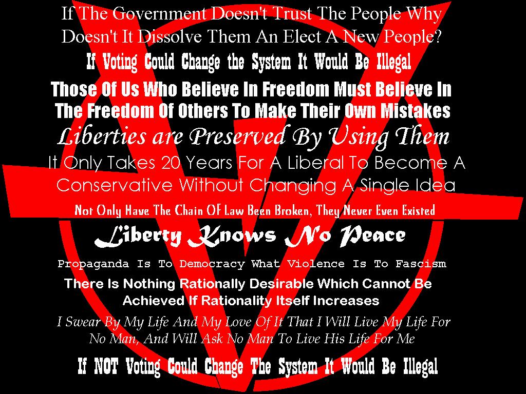 No, you haven't been duped. AnarchBLATTTs(fnord) can be perfectly respectable members of a community: all that distinguishes them from anyone else is that they believe that the society can run itself better WITHOUT a central government which dictates rules which are artificially made to apply to everyone, or which makes decisions FOR everyone. Not all MOOists are anarchists (though some are), but since MOOism seems to have some kind of hangup on decentalizing, and anti-authoritarianizing everything, it seemed kinda natural for me to put my anarchist T-shirt on this MOO page, for everyone to stare at.
